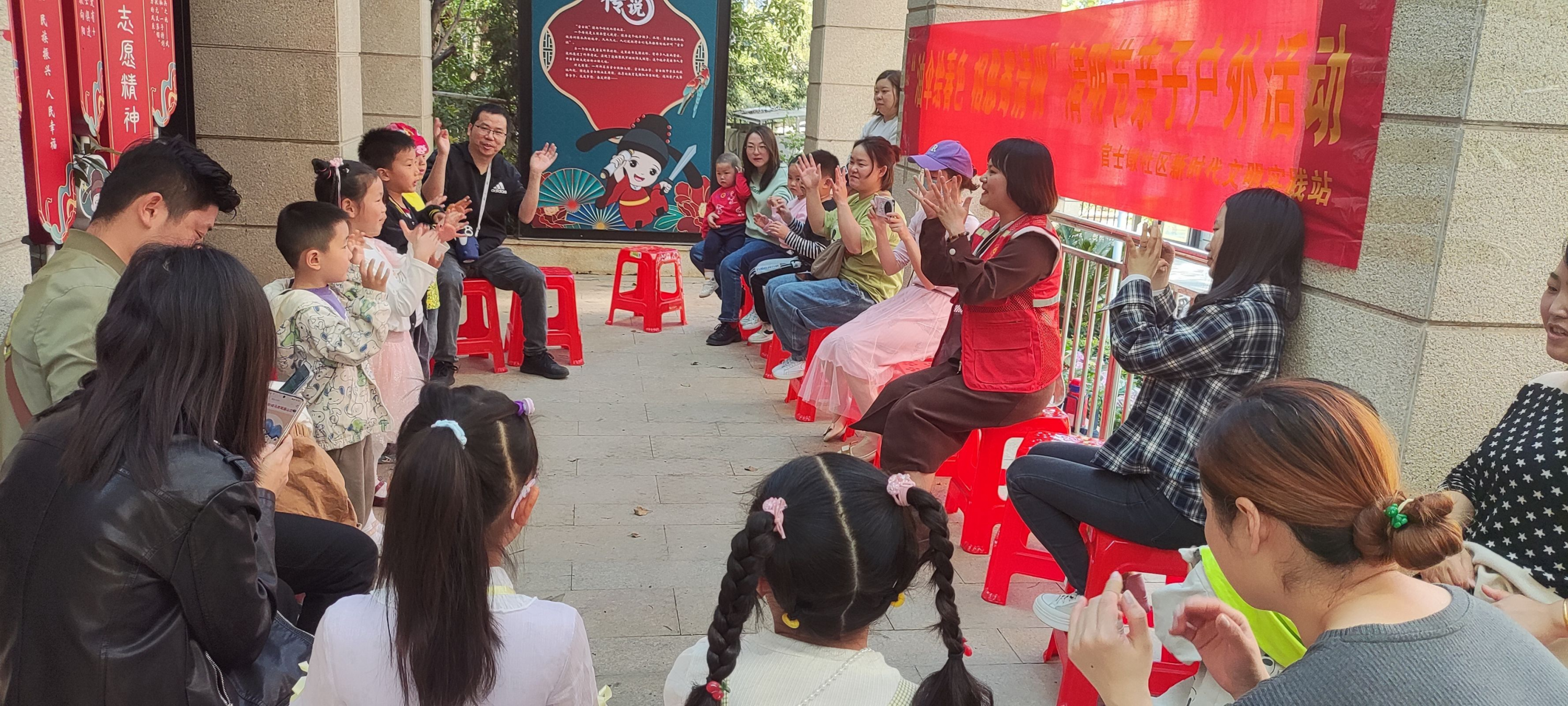 车谷融媒4月9日讯 近日,武汉经开区沌阳街道官士墩社区在墩墩向阳文化亭开展“油伞绘春色”亲子户外活动。