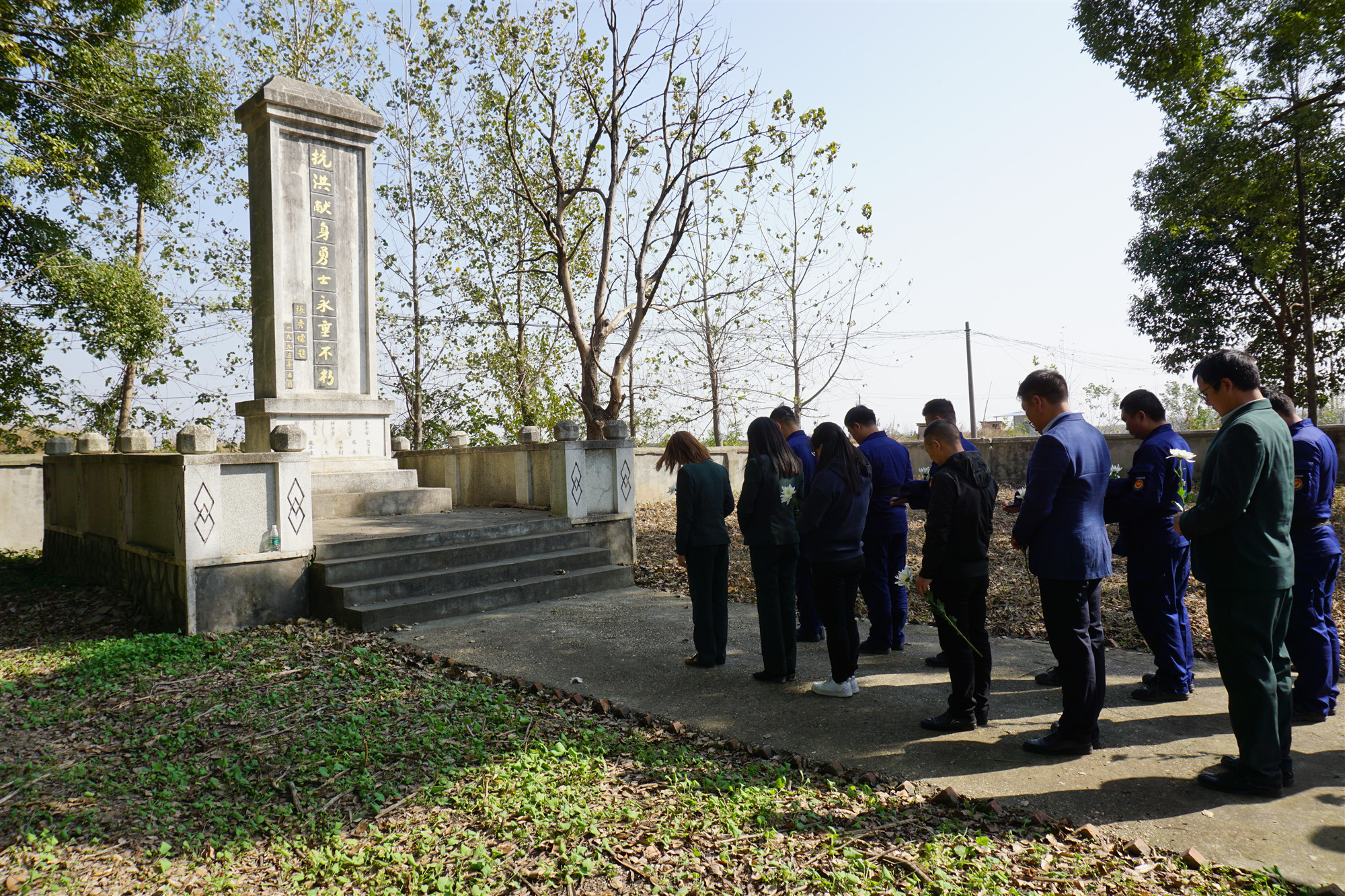 “1958年7月23日,东城垸堤段出现溃口,洪水扑向垸内,为抢救国家财产的原南丰农场机务队长李华西和陈光富、钟华堂、聂良臣、谢敬斋、马庆德、张平录、黄杰、陈士钊、杨全、欧阳万贵11位同志,奋不顾身抢涉南丰桥时,不幸被洪水吞没,献出了宝贵的生命。”祭扫主持人陈艳为大家介绍十一勇士爱国事迹。