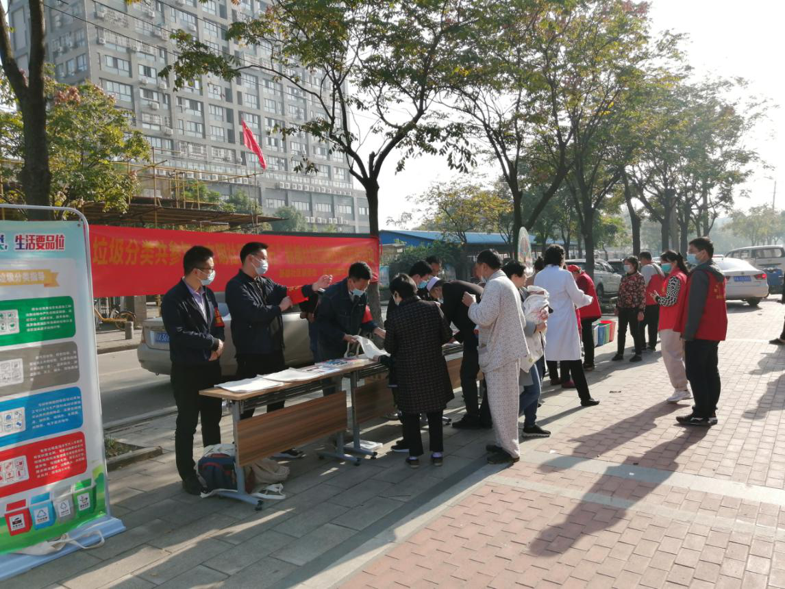 同时,党员、志愿者还深入到小区附近商铺中,分发垃圾分类宣传单页、讲解垃圾分类知识,并向商铺主提倡环保经营。