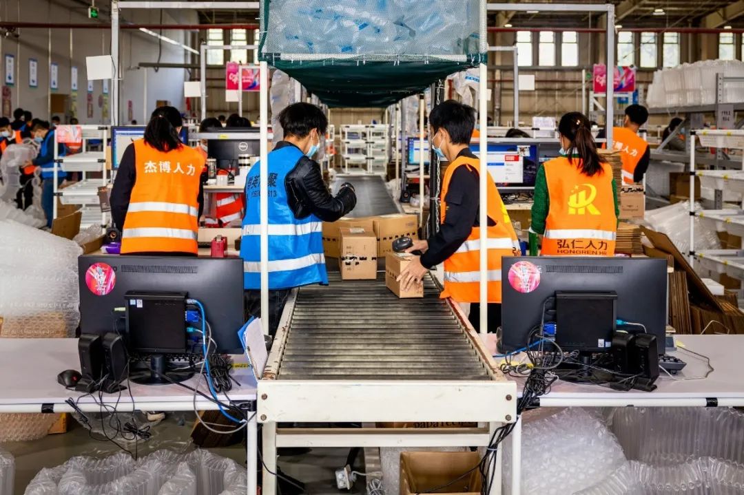 车都融媒11月12日讯 11月11日,在武汉经开综合保税区内的菜鸟武汉保税仓,一派忙碌景象,数百名工作人员快速折叠快递纸箱,印着“天猫国际”字样的纸盒堆成小山。