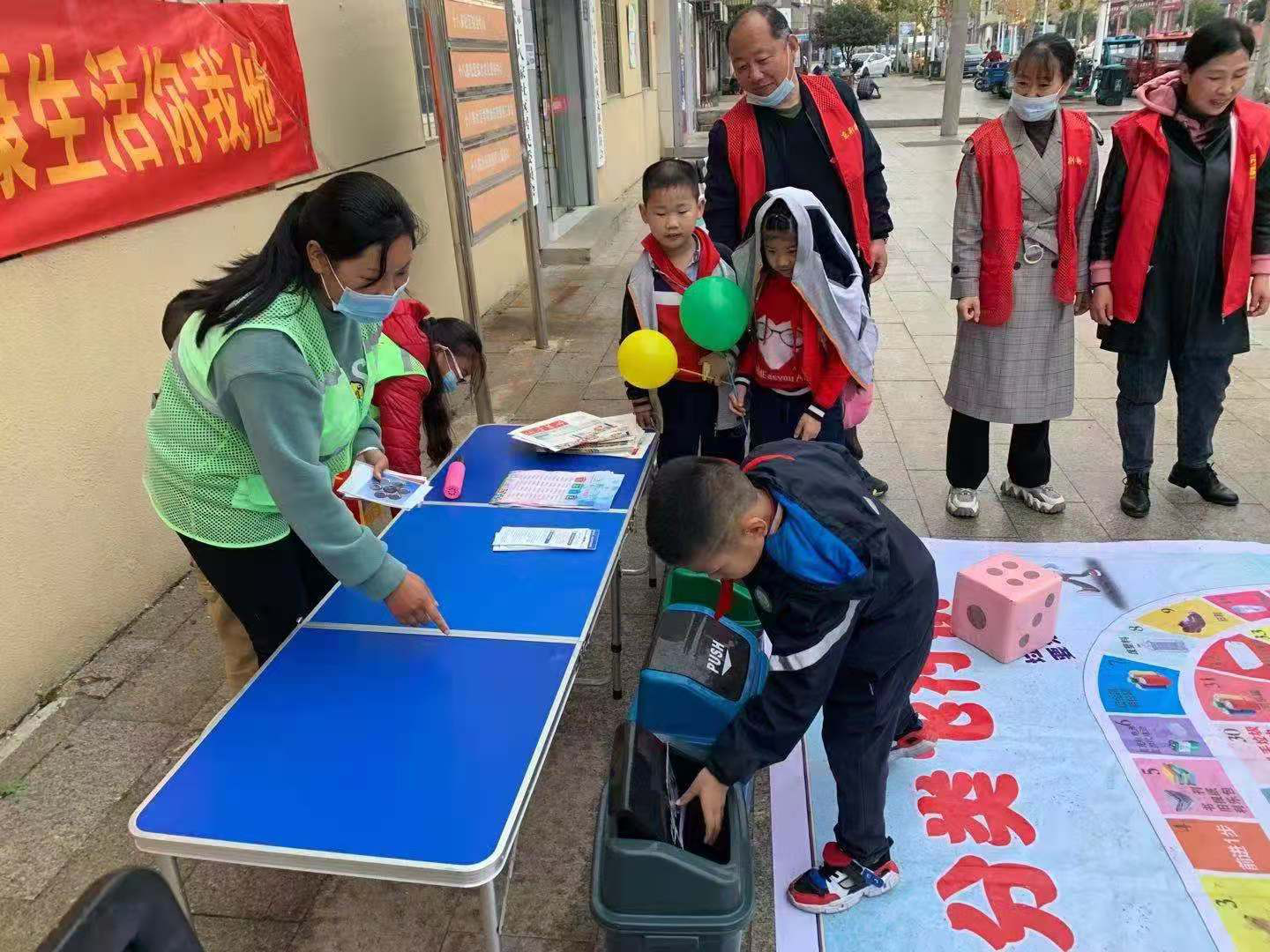 活动中,志愿者利用宣传彩页向未成年人宣传垃圾分类相关知识,设置垃圾分类箱等载体引导未成年人对垃圾分类进行场景演练,“蓝色代表可回收垃圾箱,红色代表有害垃圾回收箱,绿色代表餐厨垃圾回收箱,黑色代表其他垃圾回收箱,我们大家一起来……’”已经从事生态环境保护志愿者工作6年的胡贝一边熟练从容地讲授,一边指导如何正确投放垃圾。