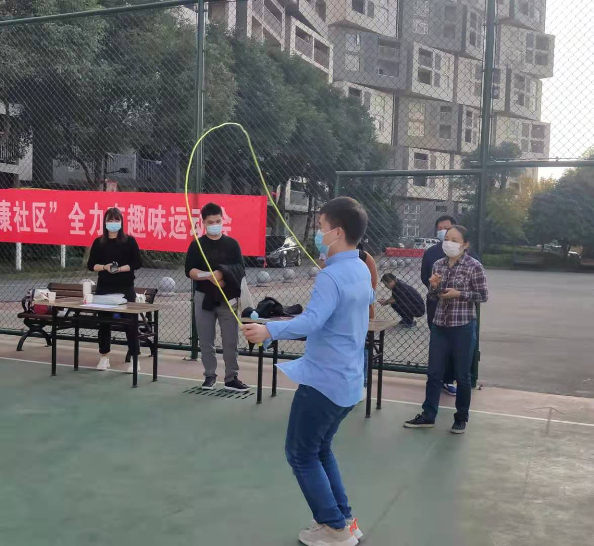 “1、2、3、4、5……加油!加油!马上50个了!”伴随着同伴的呼喊声,“趣味运动会”的第一个跳绳项目就燃起了职工们的热情。