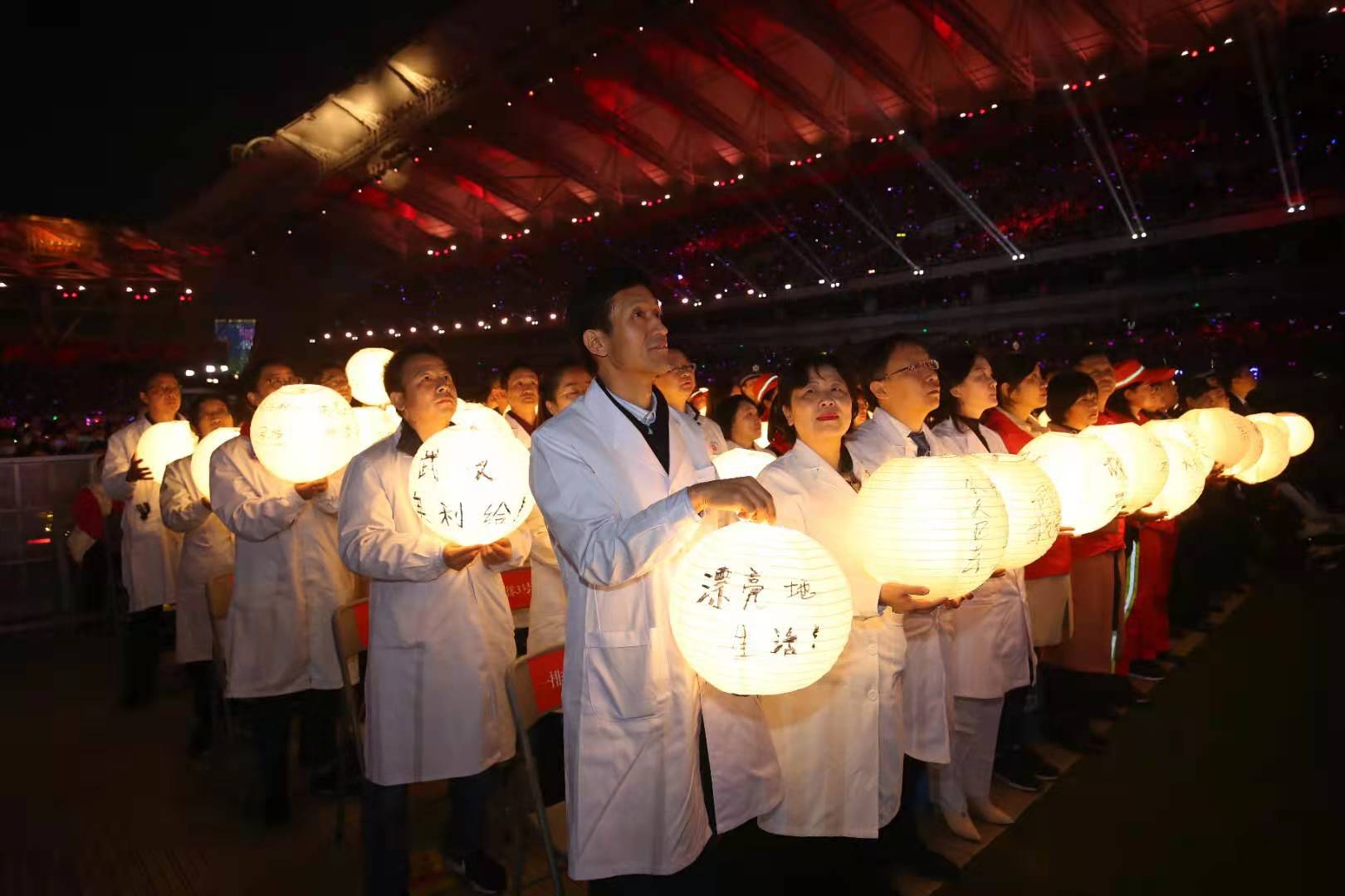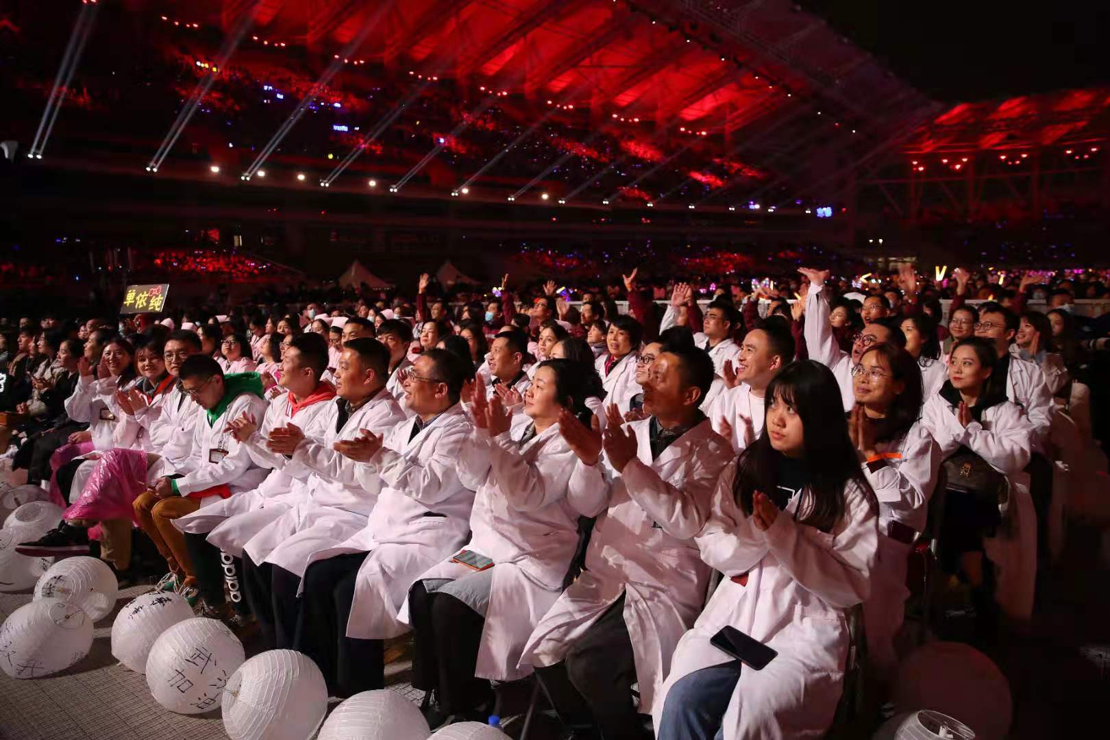 本次总决赛还请来特别嘉宾:76位曾在抗疫一线奋战的英雄,提着76个白色灯笼整齐起立,引得现场当即爆发出了雷鸣般的掌声。“他们都是来自抗疫一线的英雄!包括了环卫、医务、社区、公安、消防等等战线的一线工作者。为什么是76这个数字呢?”当主持人华少介绍说,这代表了我们携手抗疫的76个日夜时,现场观众集体向他们鼓掌致敬。