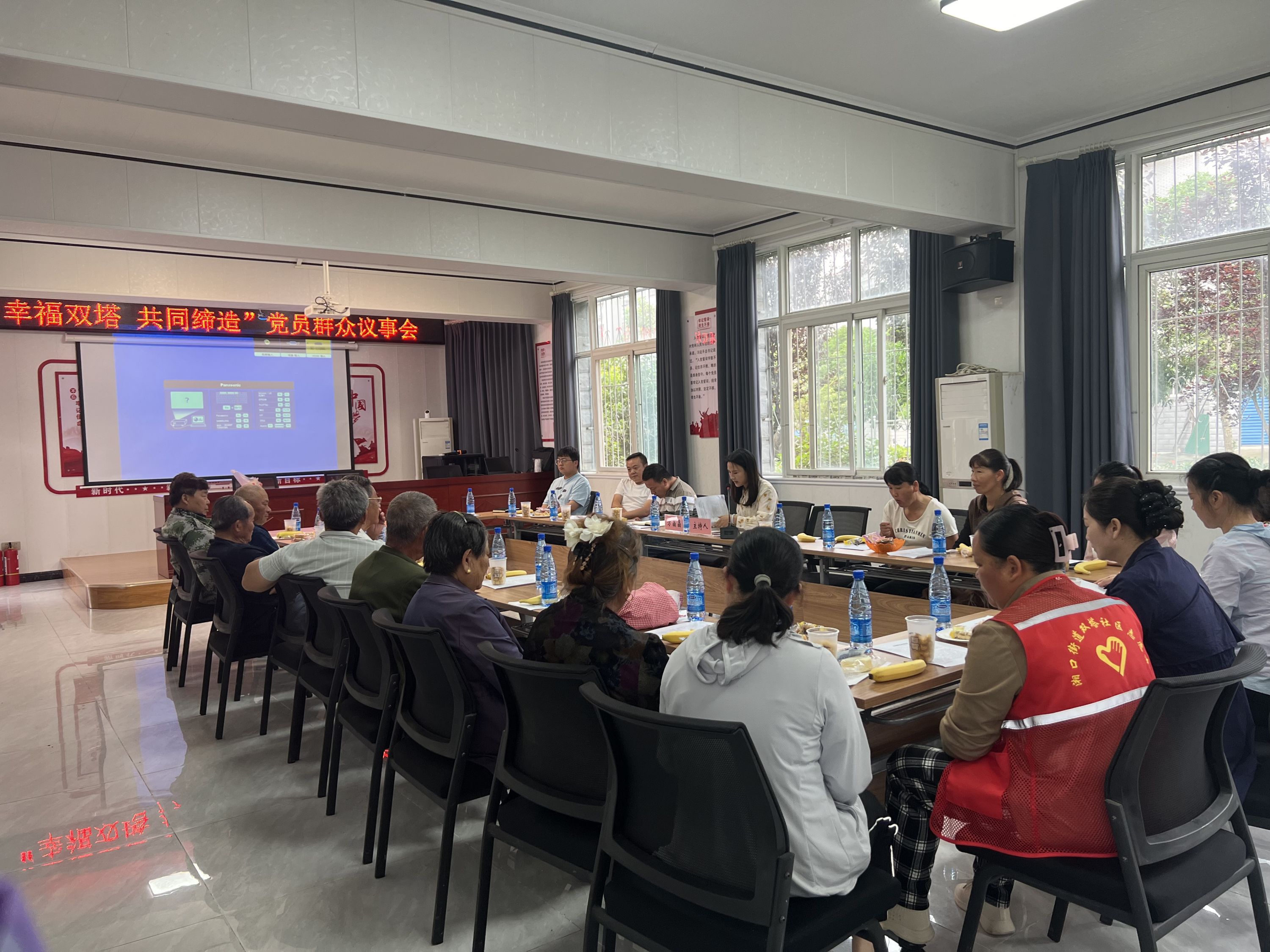 “前几天,我们家楼下下水道井盖破了。”“我建议在小区23栋通道处加装一个摄像头。”“小区老年人公共活动空间有限,想个办法解决一下?”6月14日,双塔社区党委召开党群议事会,楼栋长、居民代表、物业等30余人参加会议。