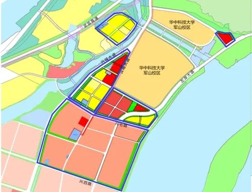 左岸大道以西、兴城大道以东、大军山以南、兴四路以北,共涉及华中科技大学军山校区周边约3500亩用地范围。(可结合项目后期洽商或实际情况优化,以最终正式公告为准。)