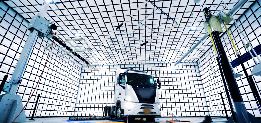 汽车的电磁兼容性(EMC)是一项非常重要的质量指标,相较其他出口认证项目,呈现出“难通过、难排查、难整改”的特点。走进武汉检验中心整车EMC试验室可以看到,四壁及屋顶全部被蓝白色的吸波材料覆盖,室内地面面积约400平方米,高达9米,安置着各类发射及接收天线,可以根据不同国家和地区的标准,对商用车、专用车、乘用车整车与零部件产品进行全项EMC测试。
