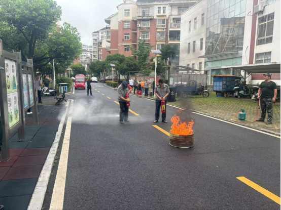随后,社区微型消防站负责人详细讲解了火灾的预防措施、火灾发生后的应急处理方法以及疏散逃生的注意事项,并带领大家实操演练厨房起火和电瓶车起火的处理。