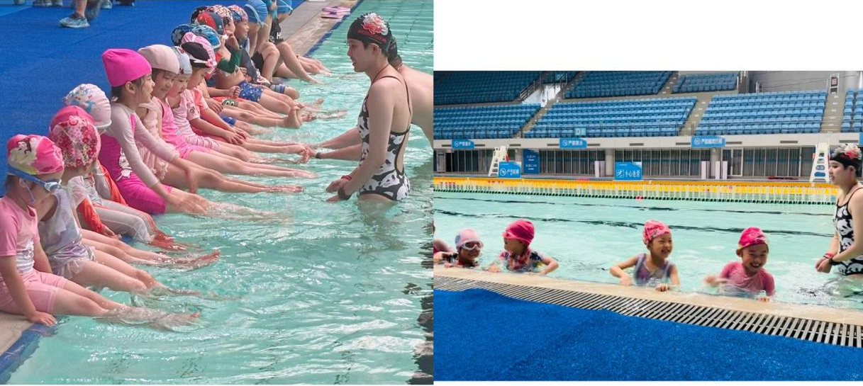 在教练们的带领下,孩子们来到游泳池边,进行模拟溺水场景的演练,学习如何在水中保持平衡、怎样呼救等实用技能。通过互动游戏,家长和孩子一起学习防溺水知识和技能,培养亲子之间的默契和共同应对危机的能力。