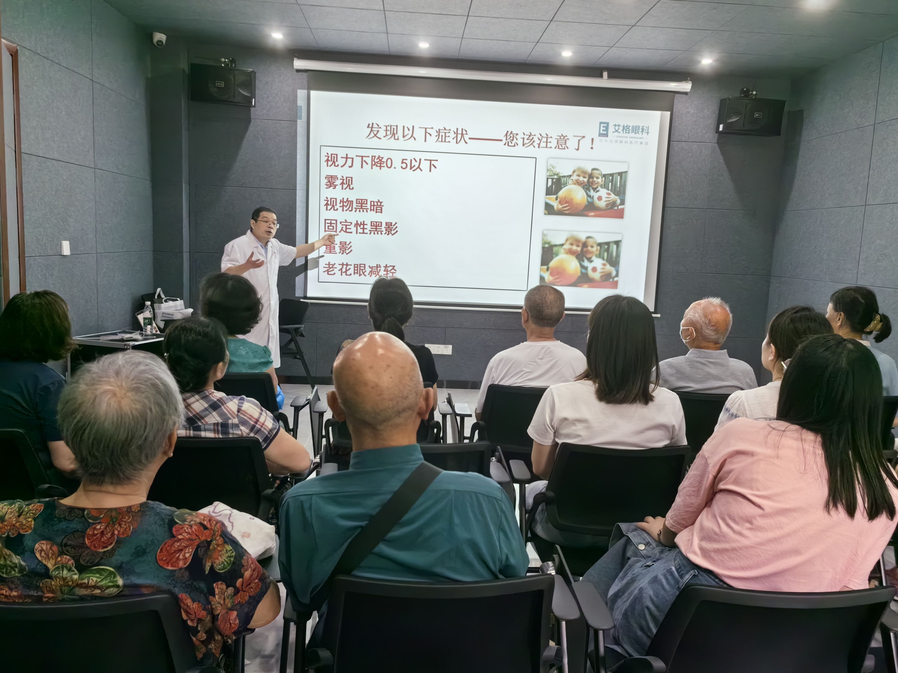 活动现场,汉阳艾格眼科专家结合临床病例,用通俗易懂的语言讲解了老年人白内障、青光眼、老花眼等多种常见眼病的症状表现、病因及影响,分享了眼保健与眼病防治的科普知识。