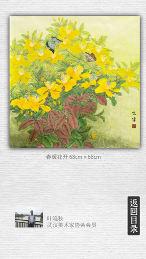 武汉,大田两座友好城市,中韩200位艺术家的书画艺术,畅览云上。其中,武汉市侨界文化艺术交流协会副秘书长、武汉市汉南区书画家协会副主席、武汉市美术家协会会员叶晓秋的国画作品《春暖花开》代表武汉经开区(汉南区)展出,是我区唯一一副入选的国画作品。
