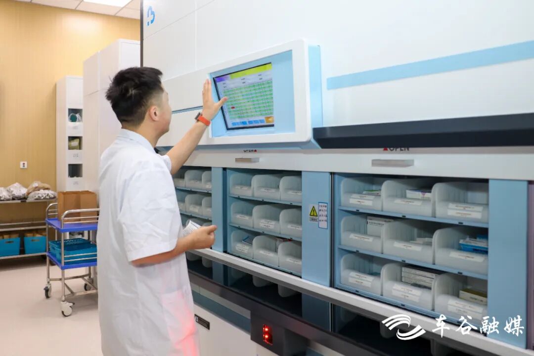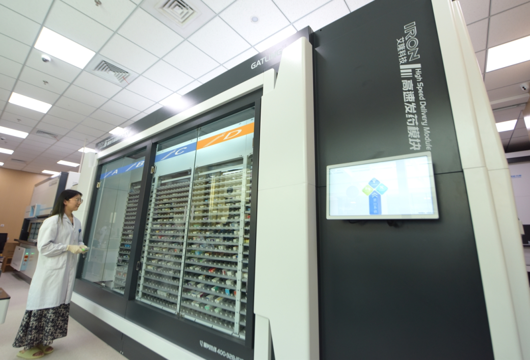 大厅的另一侧,智能采血系统叫号、贴标、标本传输、分拣都由“机器人”操控,最快可20分钟拿取报告。“库发一体”的智慧药房内,中控大屏上实时显示各项数据,1000余种药品整齐排列,机器人往来穿梭,药剂师只需扫二维码,就可以拿到患者所需药品。“‘智慧药房’把‘人等药’变成‘药等人’,极大提升患者就医体验。”药房负责人蔡雪峰介绍,通过数次系统升级,患者取药时间已缩减至8到10秒。