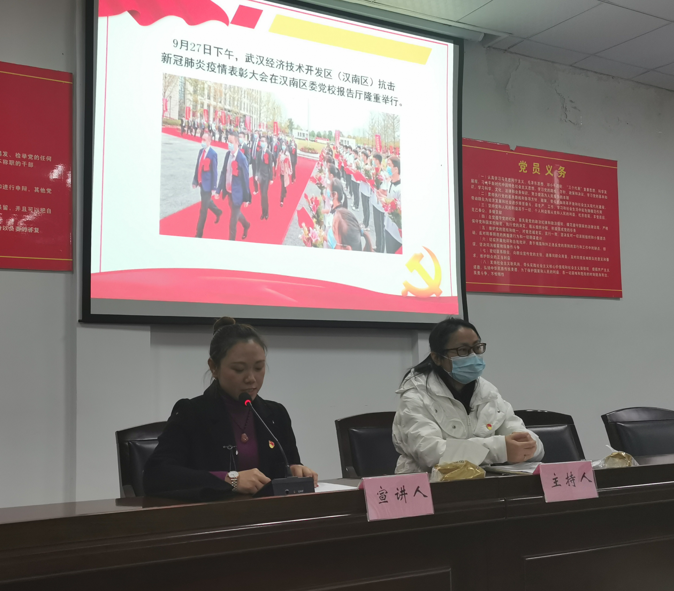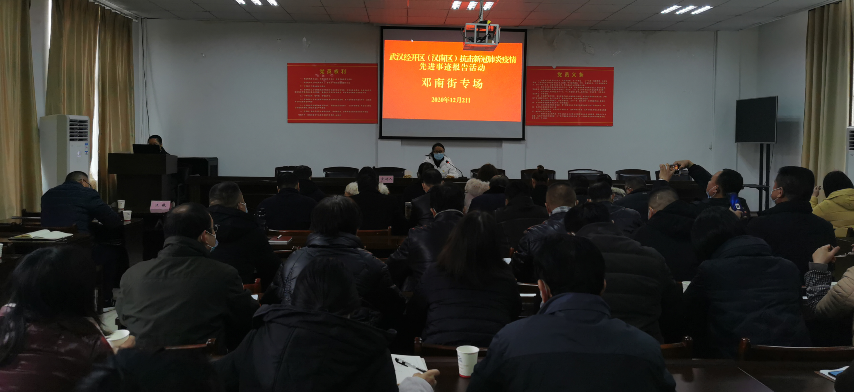 车都融媒12月3日讯 12月2日下午,武汉经开区(汉南区)抗击新冠肺炎疫情先进事迹报告团走进邓南街,举行巡回报告会。纱帽街办事处公共服务办公室负责人江哲华、沌口社区卫生服务中心办公室科员余婷、沌阳街全力北社区党支部书记樊莉、大学生志愿者王雨慧等4位报告团成员代表和邓西村网格员姚兰、捞子湖村网格员林洁等2名街抗疫先进事迹宣讲员,声情并茂地讲述抗疫一线故事,弘扬抗疫精神,凝聚奋进力量,推动邓南高质量发展。邓南街70余名党员干部参加了此次报告活动。