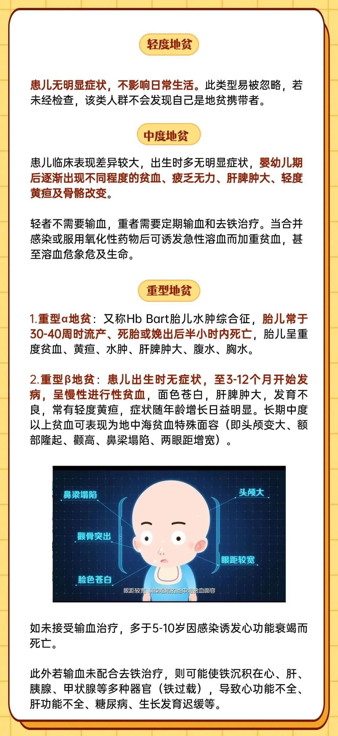 按照临床症状,地中海贫血可以分为轻度、中度以及重度。