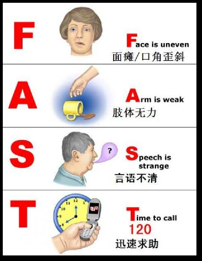 部分突发脑卒中(中风)患者早期可能并不会马上出现如昏迷等严重症状,所以不少人出现了症状却自认为不严重,觉得休息一会可能就好了,结果错过了最佳救治时间!