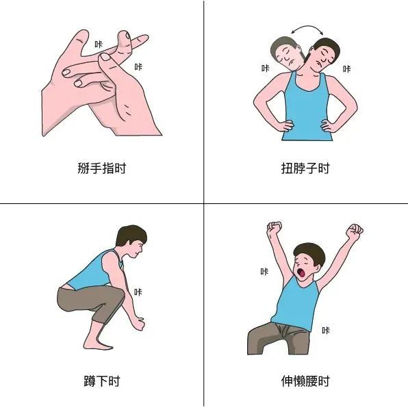 这种转动脖子、扭扭腰、下蹲起身、按按手指关节,并发出“咔咔咔”的关节弹响,这是一种生理性弹响,单纯响声没有明显的疼痛和活动受限,不需要特别在意。