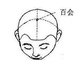 百会穴位于头顶正中(过两耳直上连线中点)。