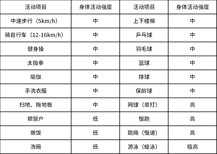 简单来说,中等强度运动就是会感觉到心跳和呼吸加快,用力但不吃力。