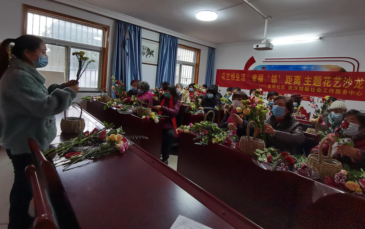 车谷融媒12月10日讯 “一花一世界,一叶一菩提。”12月9日,沌阳街金荷社区开展“花艺悦生活,幸福‘邻’距离”花艺沙龙主题活动,让社区妇女群众能够在冬日感受到繁花似锦,为冬日生活增加一份和“邻友”在一起的温暖。