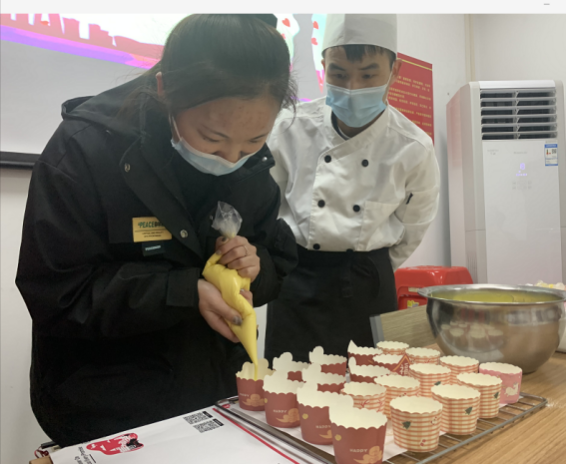 本次活动,社区邀请了专业的烘焙老师前来指导,老师为大家详细介绍了烘焙需要的工具以及如何选择食物材料,耐心地讲解每一步骤、每一细节,并亲身示范,在场的每一个人都非常专注。为了让大家更好地掌握制作技巧,老师还手把手指导她们去体验如何掌握力度,大家仔细听、认真学,不懂的地方及时向老师提问,在问与答的和谐、温馨氛围中,一块块香甜的蛋糕新鲜出炉了。