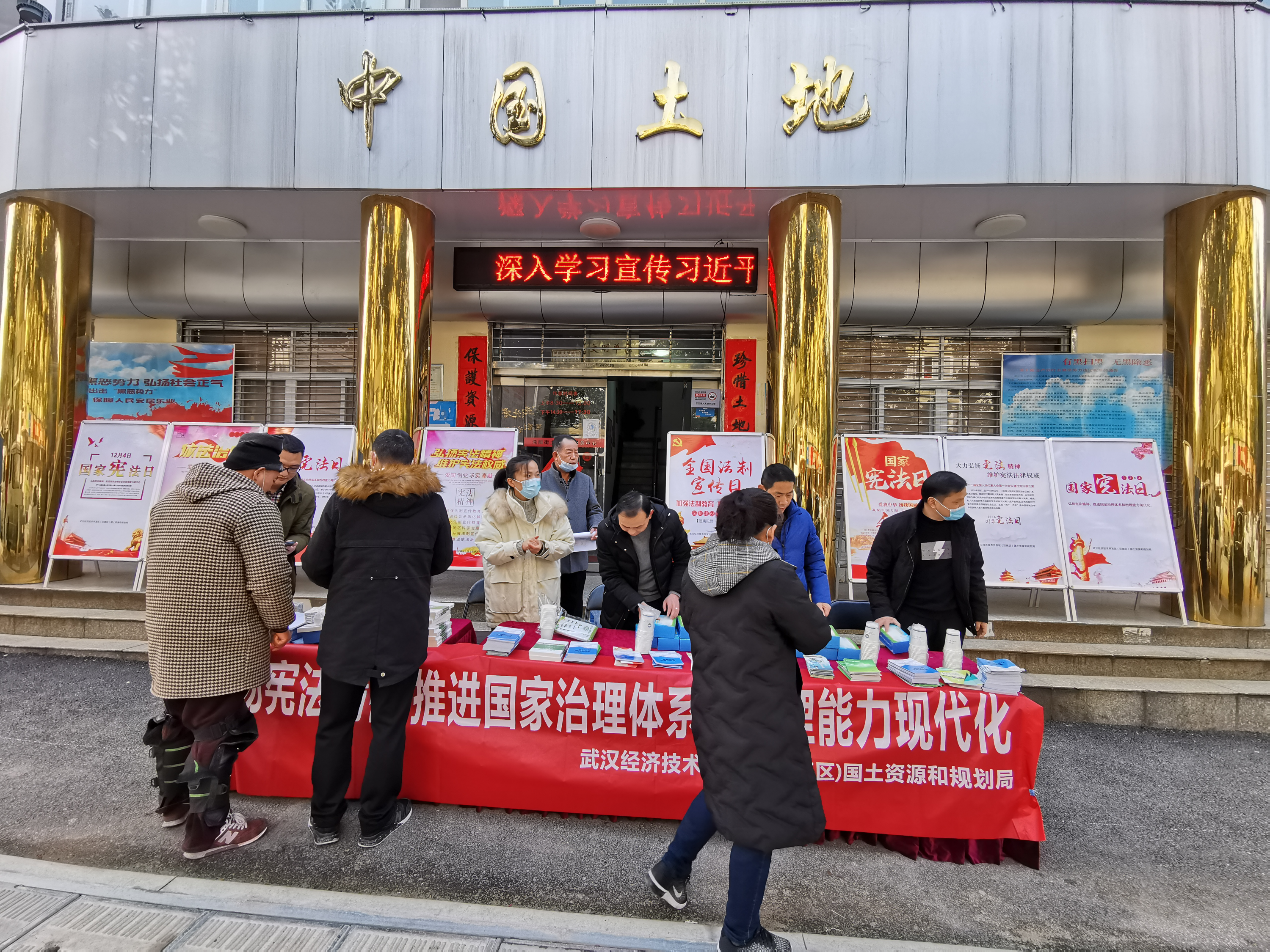 今年12月4日是第七个国家宪法日,武汉经开区自然资源和规划局联合沌阳街土地规划服务中心,在办公楼门前开展国家宪法日集中宣传活动,弘扬宪法精神,在全社会营造尊崇宪法、信仰法治的良好氛围。