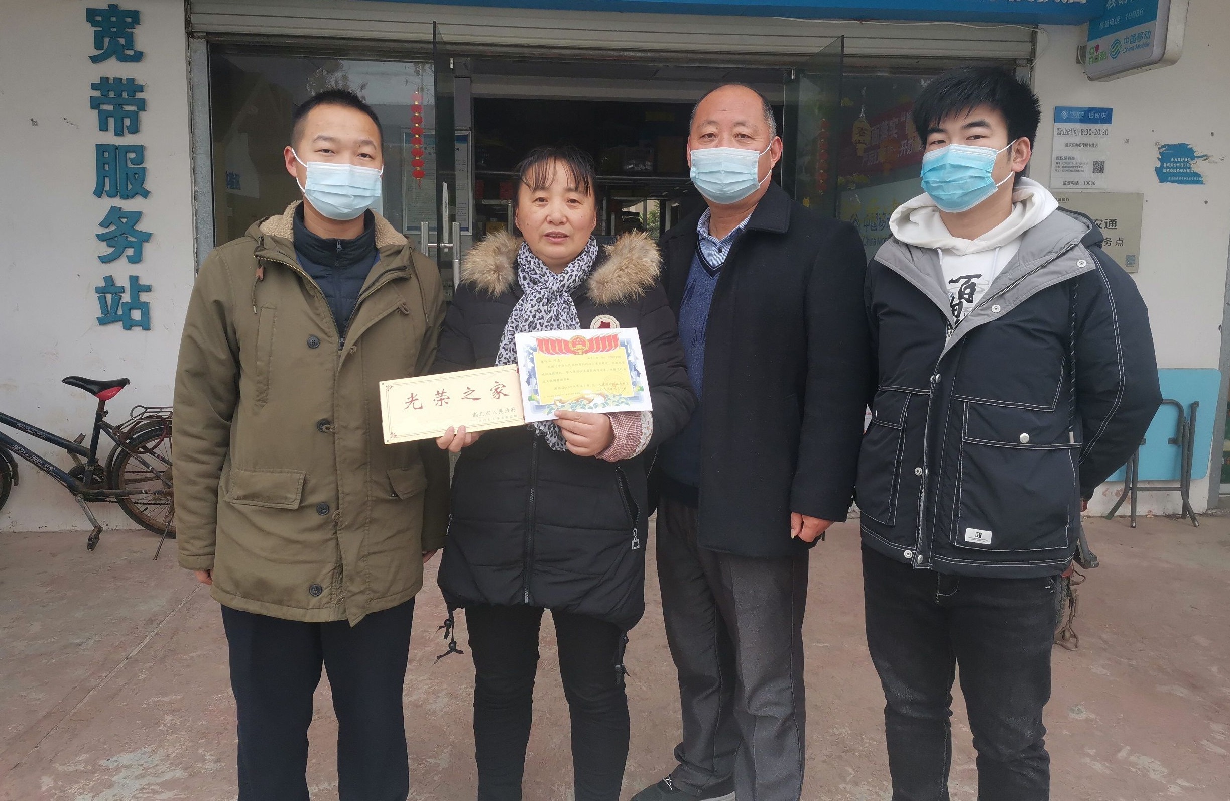 车谷融媒12月15日讯 “感谢你们跑这么远把光荣牌送过来,我感到很荣幸也很光荣。”12月10日下午,东荆街办事处开展“荣耀送上门”活动,东荆街道退役军人服务站、人武部和社区(大队)工作人员来到新兵史登轲家中,为其送上光荣牌并帮忙悬挂到门楣上。