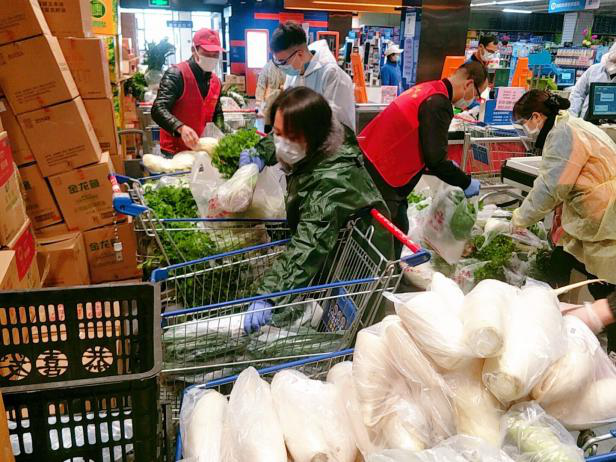在超市人员不足的情况下,邓丹组织人员进行分装、打包后再运送到社区内。为了避免居民的交叉感染,减少居民的出行,她每次都用自己的私家车义务托运居民的生活物质,并配合群众工作队分发到户。
