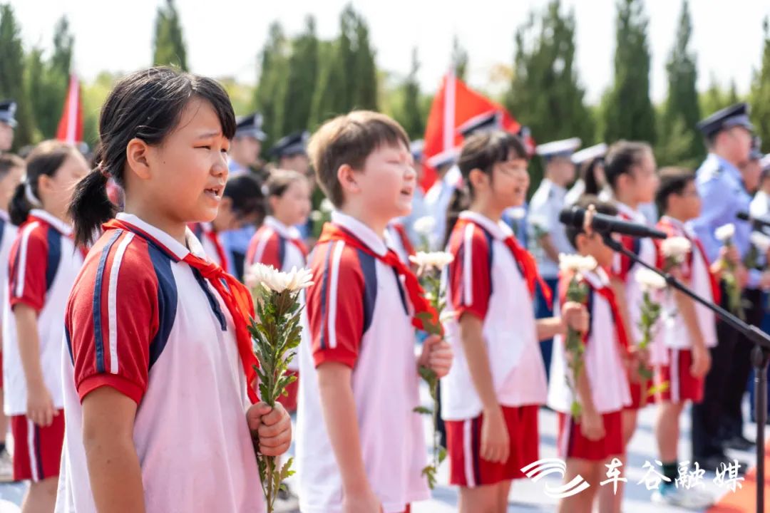 “我们是共产主义接班人,继承革命先辈的光荣传统……”20名少先队员代表手持鲜花,献唱《我们是共产主义接班人》,并致少年先锋队队礼。