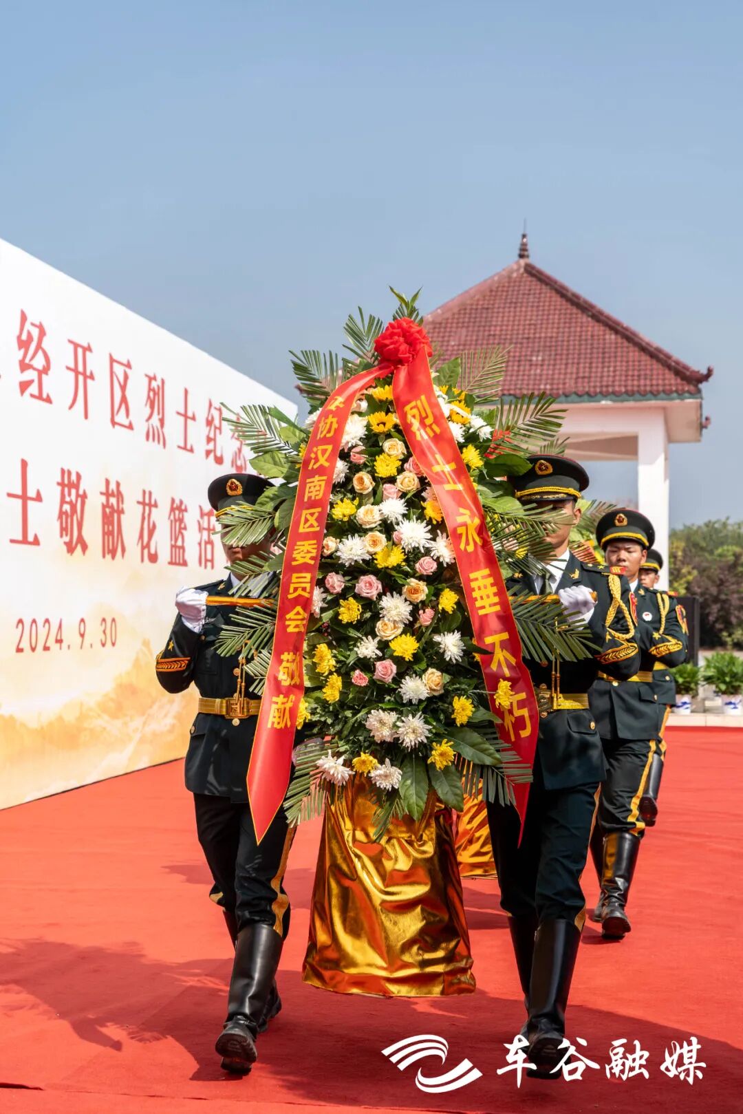 车谷融媒9月30日讯 天地英雄气,千秋尚凛然。9月30日是我国第11个烈士纪念日,当天上午,武汉经开区各界在纱帽街幸福陵园向革命先烈敬献花篮,共同缅怀英烈,传承红色基因,赓续英烈精神,汲取奋进力量。
