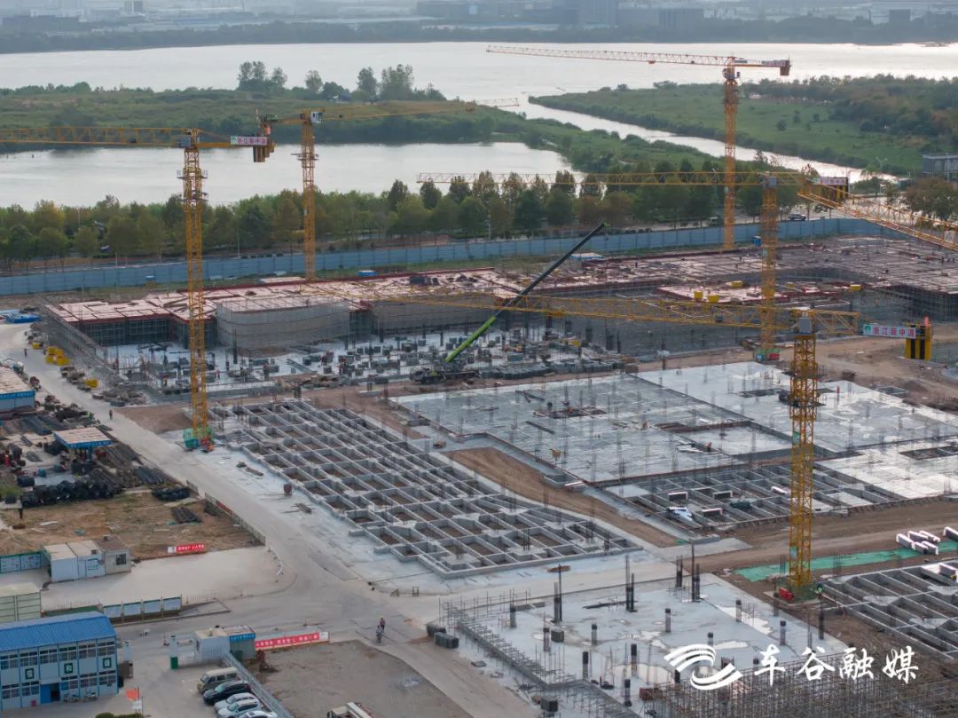 “国庆期间,共有450多名一线建筑工人坚守岗位,从事脚手架搭建、模板架立、钢筋绑扎、混凝土浇筑等工作。”项目建设现场,工程施工负责人介绍。目前,停车楼区域正在进行钢筋绑扎工作,预计将于11月中旬完工;室内场区域已进入二层底板浇筑混凝土阶段,整个项目正在加速向上“拔节生长”。