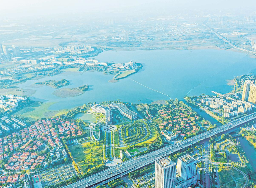 ▲三角湖等湖泊水质提升,水变清了,岸变绿了。