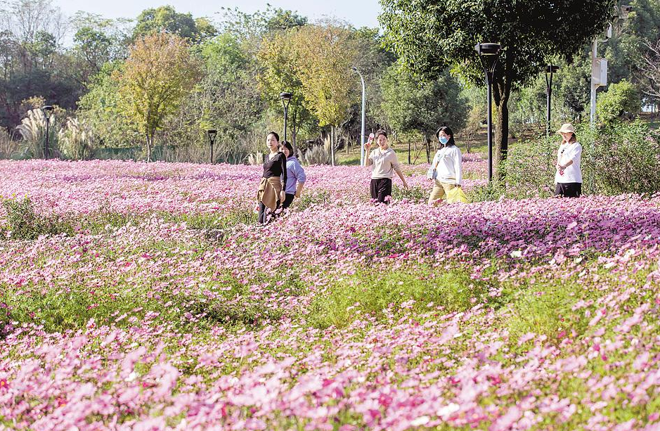 ▲龙灵山生态公园“十里花坡”,吸引市民游客融入大自然。
