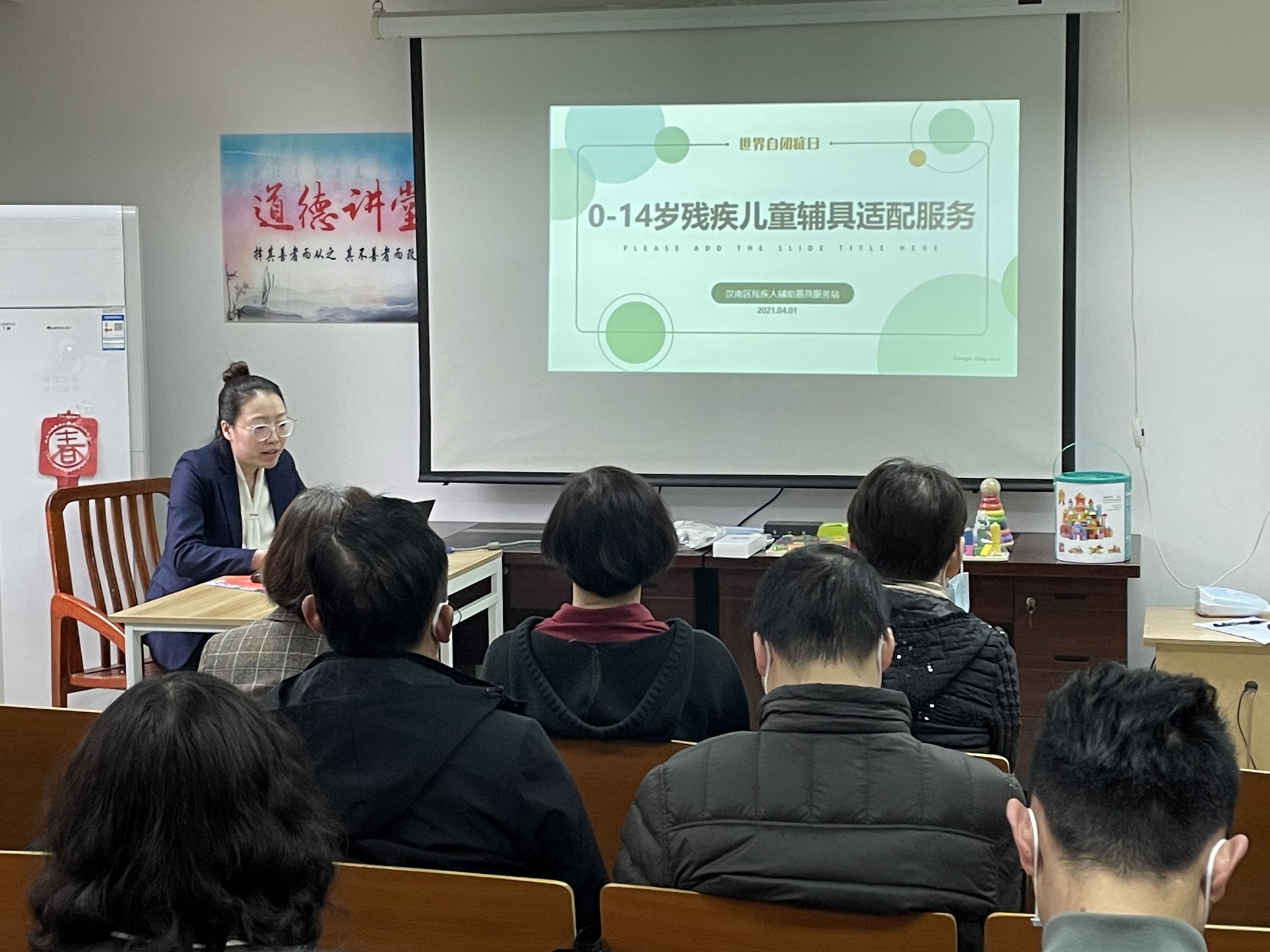 车谷融媒4月1日讯 今年的4月2日是第14个世界自闭症日。3月31日上午,武汉经开区(汉南区)残疾人联合会举办科学干预、精准康复、关注自闭症障碍儿童辅助器具宣讲活动。部分儿童家长代表及街道残疾人工作者参加了本次活动。