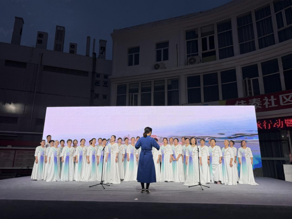 红色文艺轻骑兵的演出将氛围推向高潮,佳泰社区老年学校学员表演的大合唱《花开中国》唱出对祖国的深情祝福,老年乐队的传统乐器合奏《我的祖国》奏响时代强音,舞蹈《我的中国心》与《赞歌献给党》用肢体语言诉说赤子情怀,江汉大学青年志愿者的朗诵《永远的格桑梅朵》则让红色故事直抵人心,川剧变脸、魔术、杂技等节目轮番登场,为居民带来一场视听盛宴,最后全场齐唱《歌唱祖国》,歌声里满是对祖国的热爱与祝福。