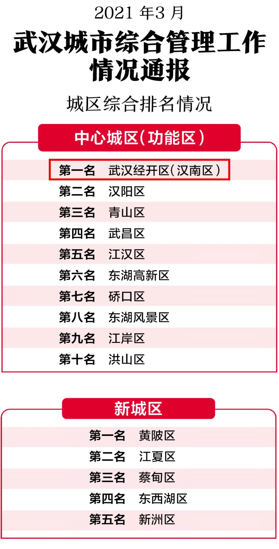 排名出炉!车谷这项考核连续两个月排名第一 2021-04-04 12:00 长江日报 0 4月2日,武汉市城综委、武汉市文明委联合通报今年3月份“大城管”考核成绩单,其中,中心城区(功能区)中,武汉经开区(汉南区)连续两个月排名第一,新城区中黄陂区进步明显,2月份排名第四,3月份升至第一。