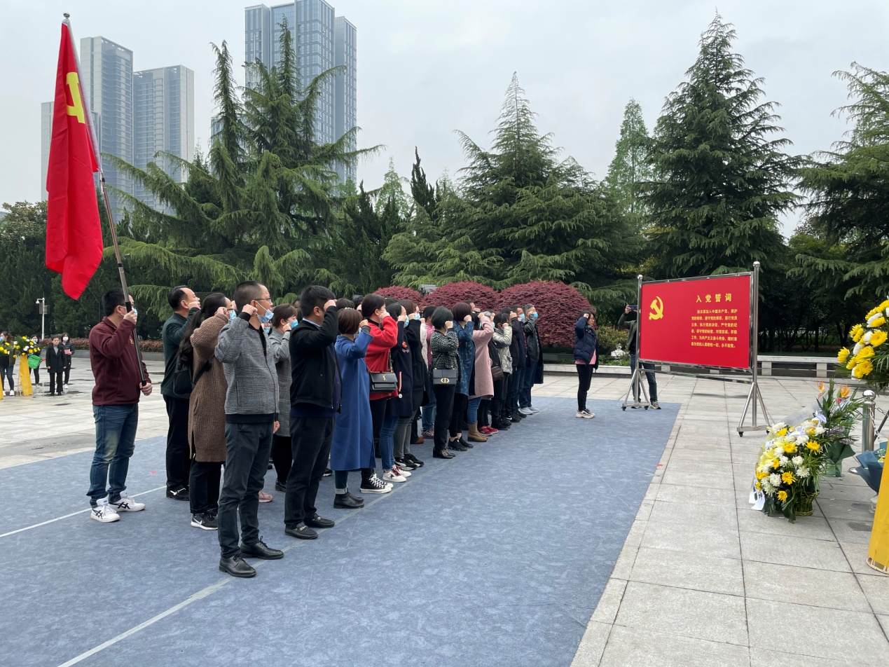 车谷融媒4月9日讯 “我志愿加入中国共产党,拥护党的纲领,遵守党的章程,履行党员义务……”义正辞严的入党誓词在二七纪念碑前响起,全体党员肃然起敬,向烈士致敬。