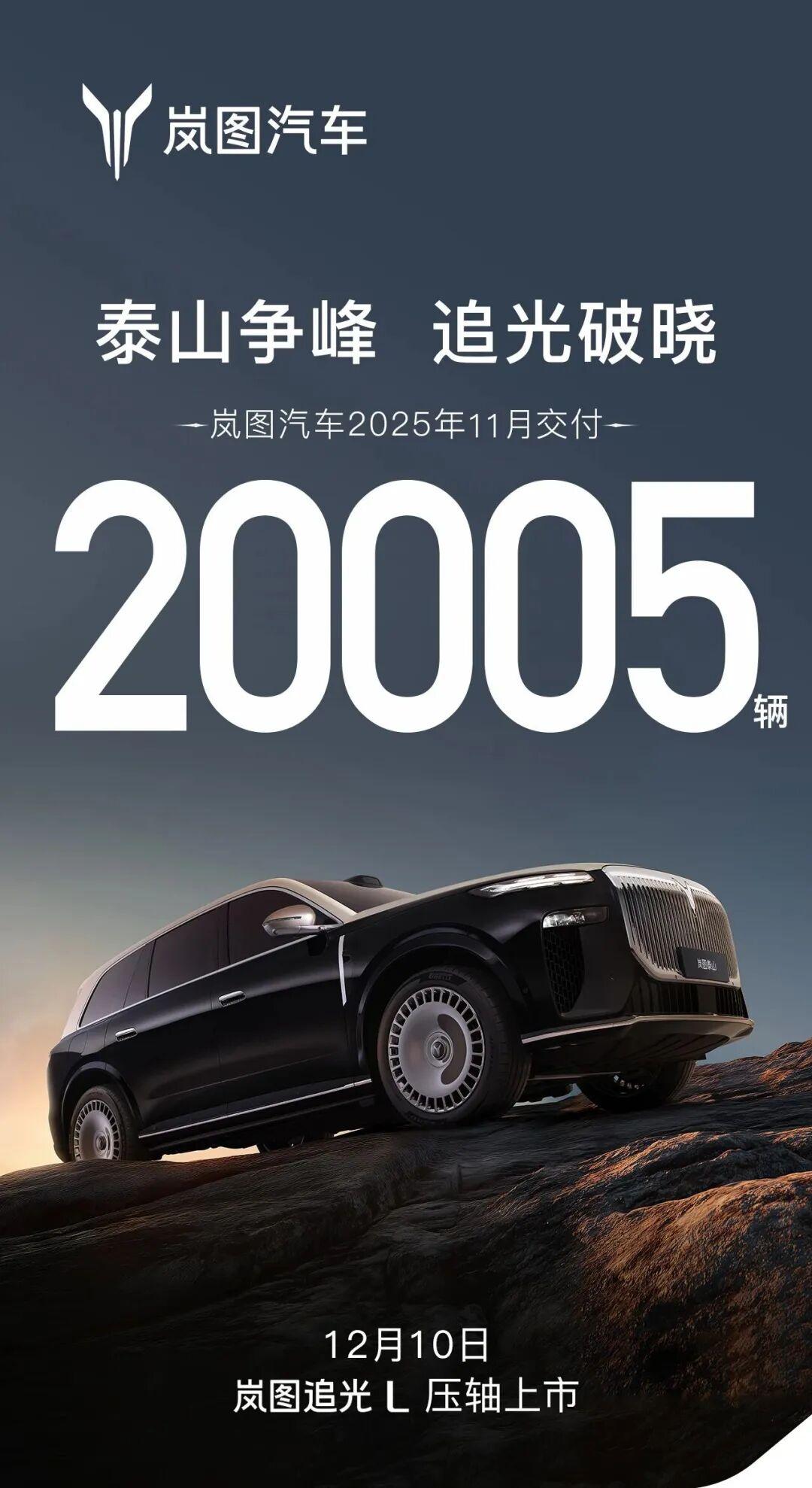 本月,岚图汽车旗下旗舰车型将再度焕新。“新时代旗舰轿车”岚图追光L将于12月10日正式上市,对豪华轿车市场发起冲击。新车全系搭载华为乾崑智驾ADS 4与鸿蒙座舱HarmonySpace 5,标配四驱系统及800V岚海智能超混,纯电续航达410km,20%电量充至80%仅需12分钟,智能与豪华配置行业领先。
