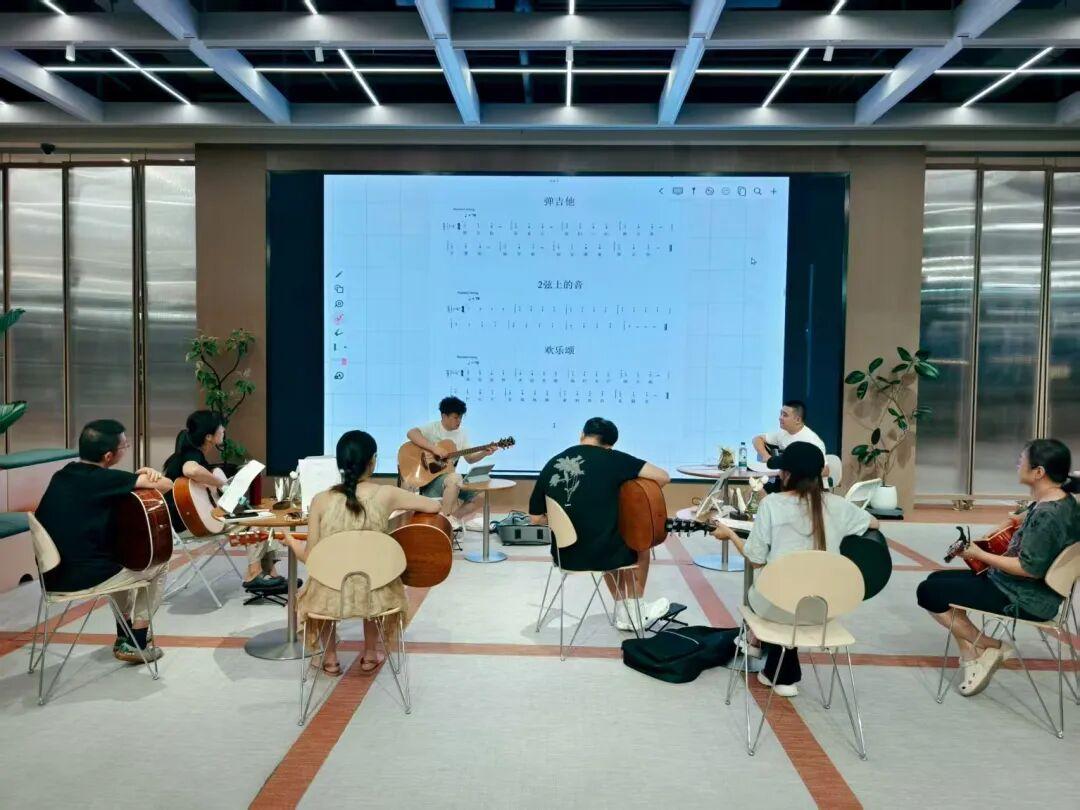 目前,像这样的业主主理人,该小区已有20余位。他们自发创建了14个兴趣社群,涵盖亲子、运动、音乐、养生、手工等多个领域。同时,开发企业不仅免费提供约3000平方米的室内外活动空间,还赞助经费、器材、耗材等,让惠民优质的社群活动得以持续开展,如15元/次的瑜伽课,30元/次的吉他课……