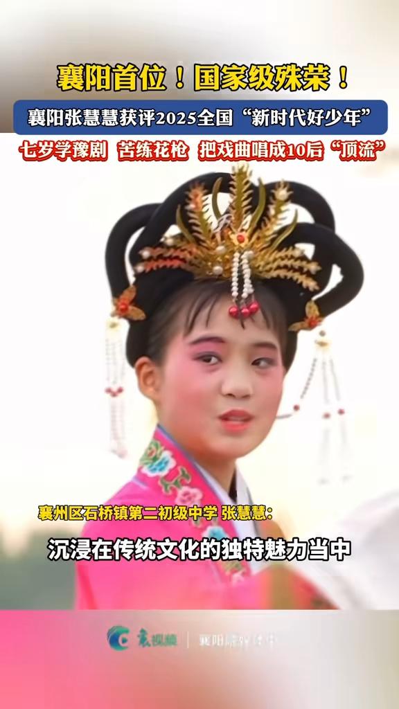 8月19日,2025年全国“新时代好少年”先进事迹发布,襄阳市襄州区石桥镇第二初级中学学生张慧慧榜上有名,系襄阳首次荣获全国“新时代好少年”荣誉。13岁的张慧慧,在课业之余将汗水洒在戏曲舞台上。从7岁开始,踢腿、翻身、练唱,她将豫剧唱成了青春的一部分,更带动身边同学,让古老戏韵在校园里生根发芽。她的坚持,让我们看到“侠”的种子,早已在新时代的土壤里悄然萌发。