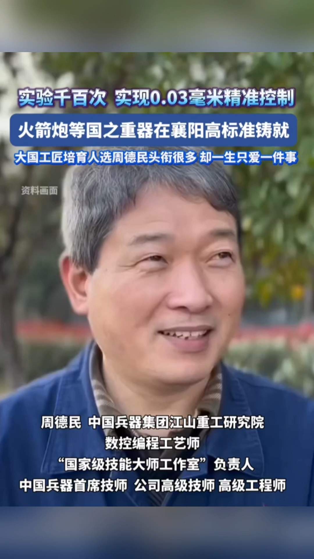 9月23日,首批200位大国工匠人才发布,江山重工研究院数控操作工、正高级工程师、中国兵器首席技师周德民上榜。周德民34年扎根数控机床前,他的“兵器”是精密的刀尖,他的“战场”是国防装备的核心部件。他参与过多项国家重点攻关,解决过数百个加工难题,却始终低调如初。如今,他更将一身技艺倾囊相授,带领工作室培养出上百名技术骨干,将这份关乎家国安澜的“内力”,绵绵不绝地传承下去。