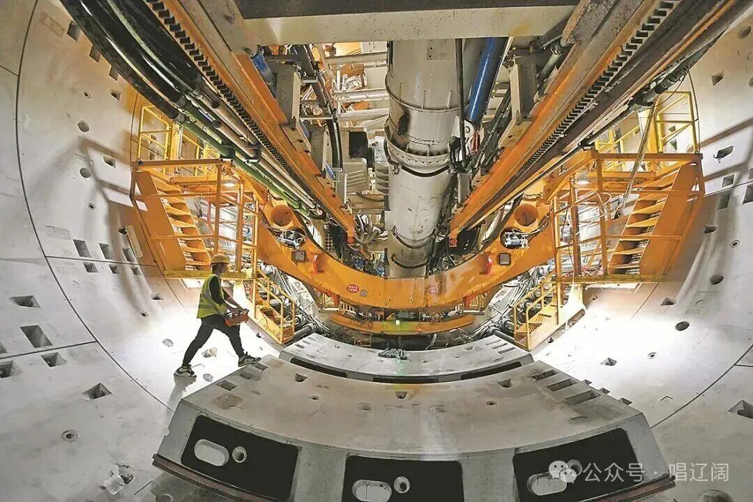 12月3日,在引江补汉工程(谷城段)输水隧洞,工人在掘进机内安装管片。