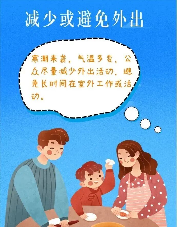 一是重点防范寒潮大风、冰冻、积雪等对交通运输、电力通信设施、户外临时设施和农业生产等不利影响;