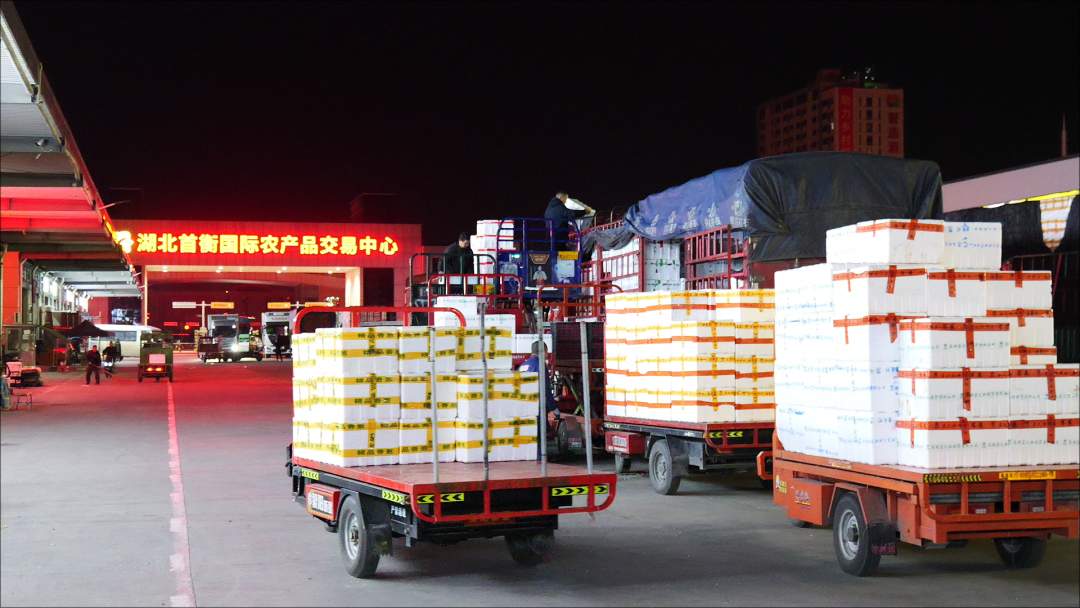 此刻天未破晓,这里已灯火如昼,一辆辆满载湖北各地农产品的货车鱼贯而入,一筐筐鲜蔬、一箱箱粮油、一袋袋特色产品被陆续卸下。作为华中重要的农产品集散枢纽,这里正是“荆楚味道”奔赴全国的起点,更是湖北乡村振兴的强劲引擎。