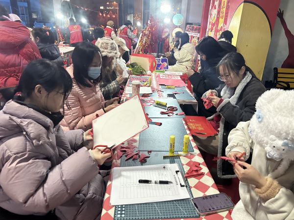 公益慈善区的人气尤为高涨,各类非遗体验特色摊位更是成为青年群体的打卡热门,尽显非遗与青春碰撞的别样活力。“锦心结艺”带领大家学习编织象征吉祥的中国结,在穿绳打结中感受传统工艺之美;“扭趣星火”邀青年一起用扭扭棒制作俏皮可爱的迷你烟花,解锁非遗手作新玩法;“墨拓迎福”提供福字拓印体验,让青年亲手拓印福字,触摸传统民俗的温度;“剪彩纳吉”则教大家剪出寓意美好的新春剪纸,在巧手下让红纸焕发生机,沉浸式感受传统文化的独特魅力。青年群体踊跃参与各项手作体验,在动手实践中领略非遗风采的同时,还为社区公益基金注入一份爱心,在体验“指尖公益”快乐的同时,也让千年非遗在青年人手中焕发新生,赋予新年别样的文化年味。