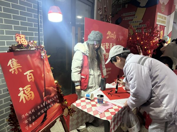 欢乐游戏区则是充满了欢笑与喝彩:“捞五福”考验眼疾手快;“同心接福”需要默契配合;“集百福”则让大家静心书写,一个个福字挂满背景墙,汇聚成一片红色的祝福海洋。