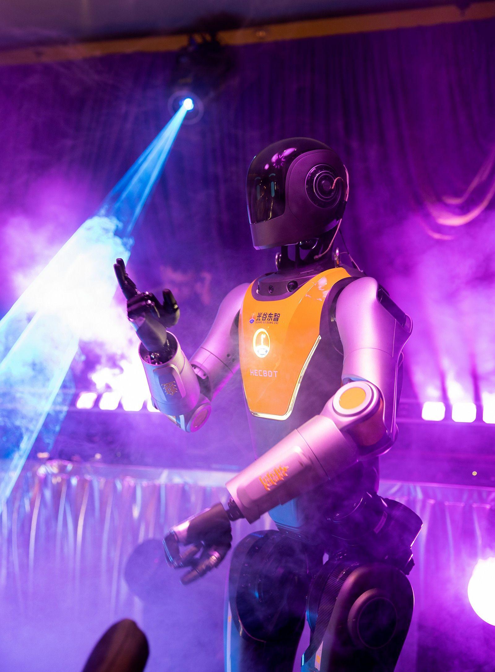 光谷人形机器人7S店的机器人在年会表演。胡龙丹供图