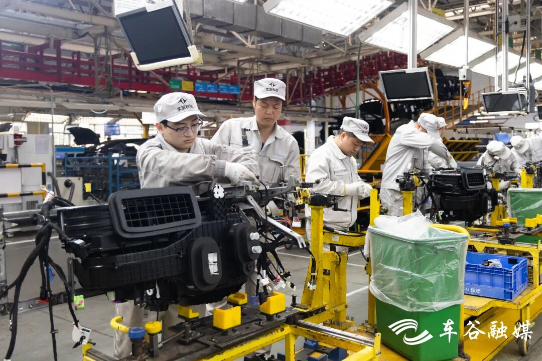 “今天一厂总装车间438名职工到岗,出勤率达到100%。”总装车间值班主任葛石霖介绍,目前,奕派科技武汉一厂主要生产东风风神L7、L8、奕炫、皓瀚等车型,产品覆盖纯电、插混、燃油,“开工第一天,武汉一厂实现了‘开工即满产’,每小时能生产40辆新车。”
