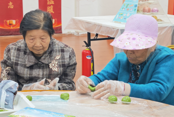 最后,武汉商学院食品学院的志愿者们带领老人们进行青团制作。志愿者们首先讲解了青团的由来及清明吃青团的民俗寓意,随后协助老年居民揉面、包馅、塑形,细心指导制作技巧,引导老人体验动手的乐趣。活动现场暖意融融,老人们亲手制作青团、品尝美食,在欢声笑语中感受节日温情与邻里关怀,进一步弘扬了传统文化。