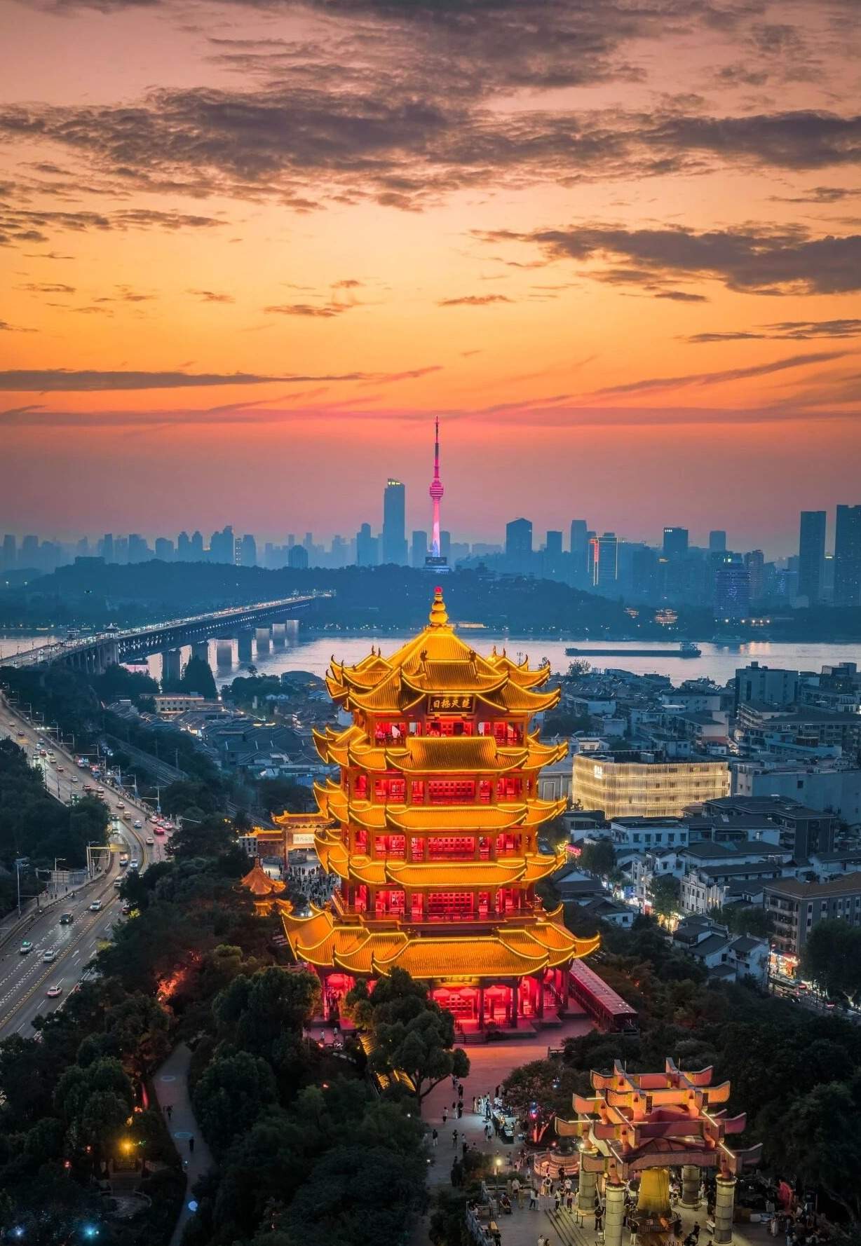 四百多年后,全国各地数万名游客相聚于武汉龟山公园,在他们的镜头里,龟蛇两山的新绿漫上山巅,长江大桥的钢索牵着流云,黄鹤楼的飞檐挑着粉樱。