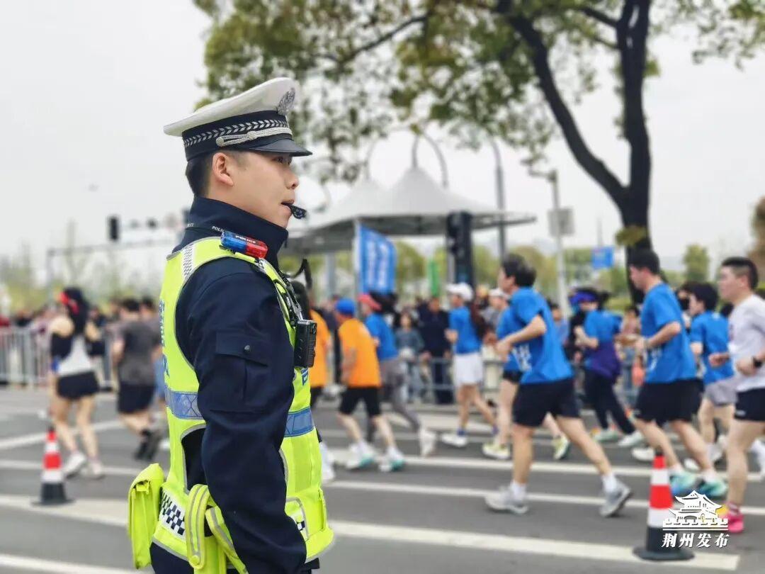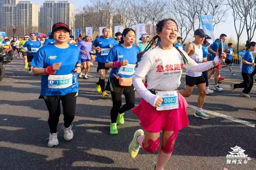 赛事当天,这份热情从幕后走到台前,化为坚实的守护。3559名“荆青愿”志愿者精神饱满,进行物资分发、道路引导;20个医疗服务站、25辆医疗急救车、204名医护人员定点待命,移动AED骑行队全程护航;公安民警、交警组成的专业保障团队严阵以待,构建起立体化赛事保障体系。