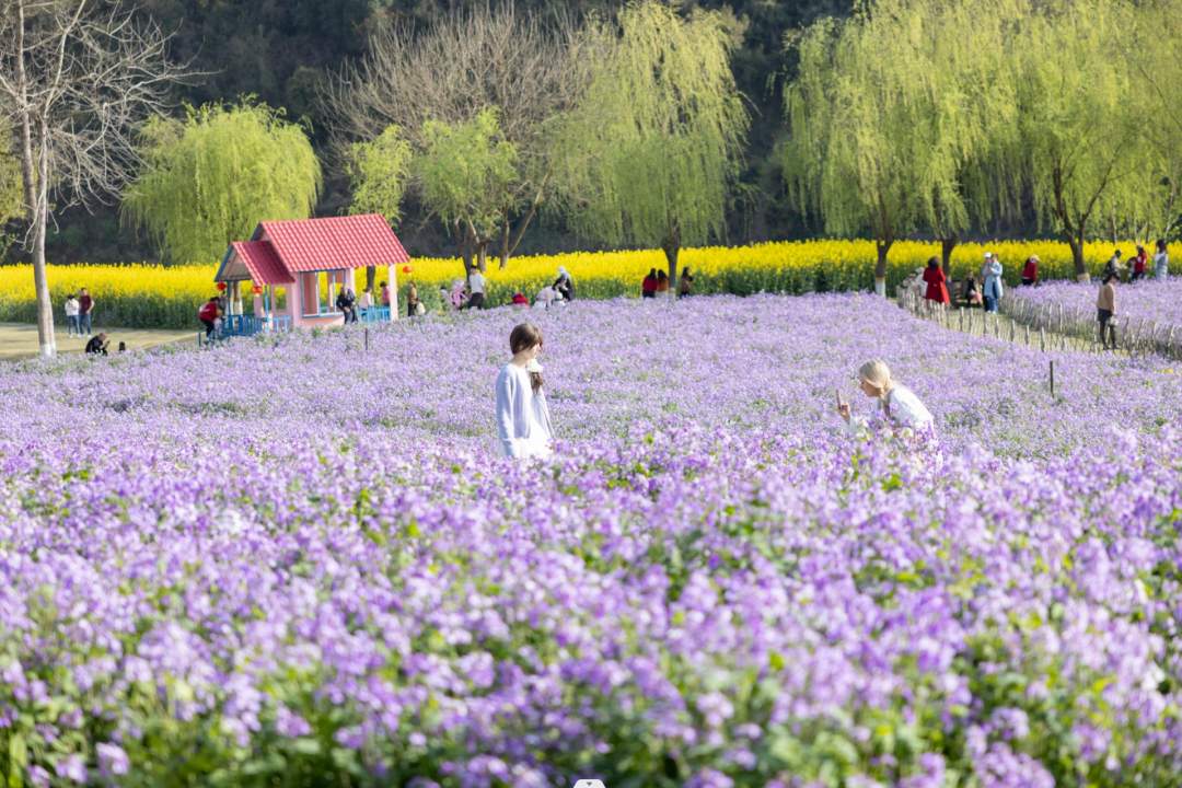 ▲柏临河湿地公园二月兰花海。图片来源:魅力伍家岗